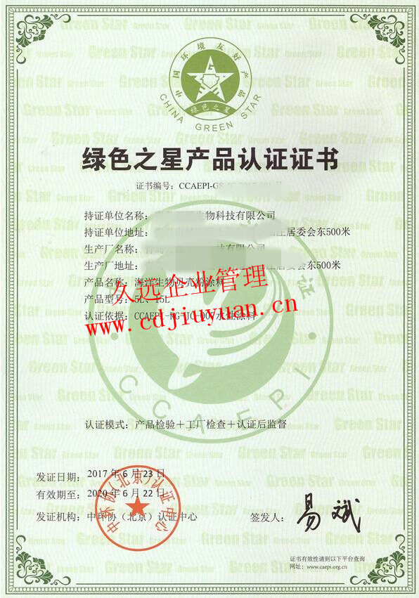 中國環(huán)境標(biāo)志產(chǎn)品認(rèn)證證書(十環(huán)認(rèn)證)