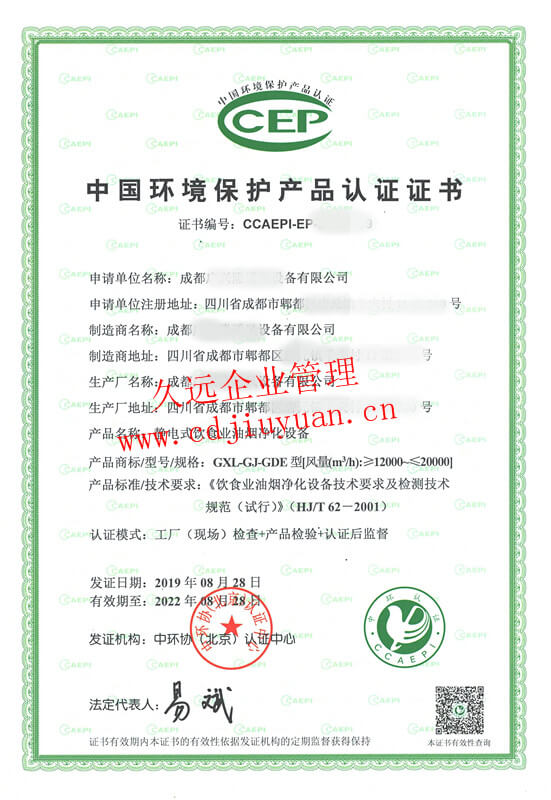 中國環(huán)境保護產(chǎn)品認(rèn)證證書