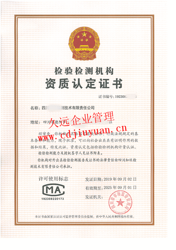 檢驗檢測機構(gòu)資質(zhì)認(rèn)定證書(CMA)